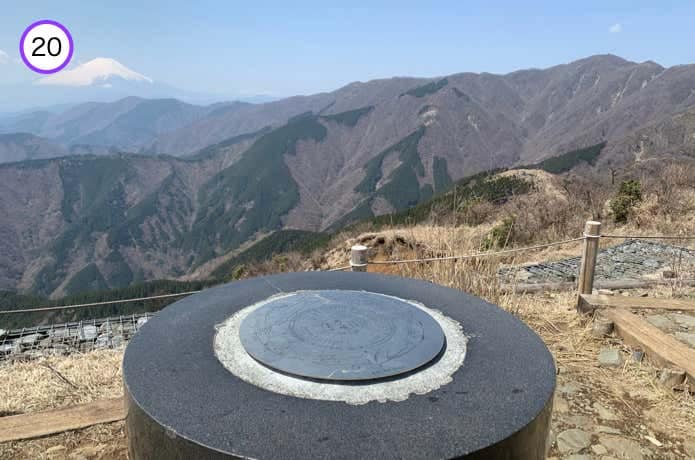 行者ヶ岳(1180m)に到着です。山名にもなっている行者(山中に篭ってストイックな修行を行う修験道の信者)の修行の場でもあったこの山で、別当(管理する立場)を務めた東光院と秦野市山岳協会が設置した石碑も安置されています。
