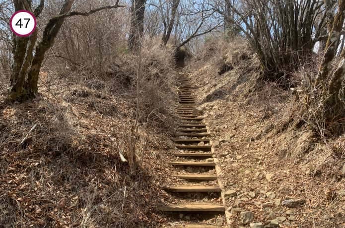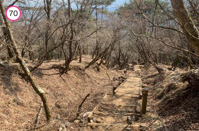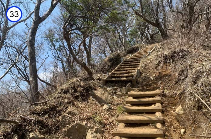烏尾山へ近づくと、登山道は階段に変わります。