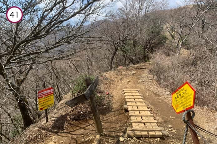 二ノ塔と三ノ塔の鞍部は崩落が進んでいるため、木製の橋がかけられています。表尾根の鞍部の多くが、このような橋となっています。