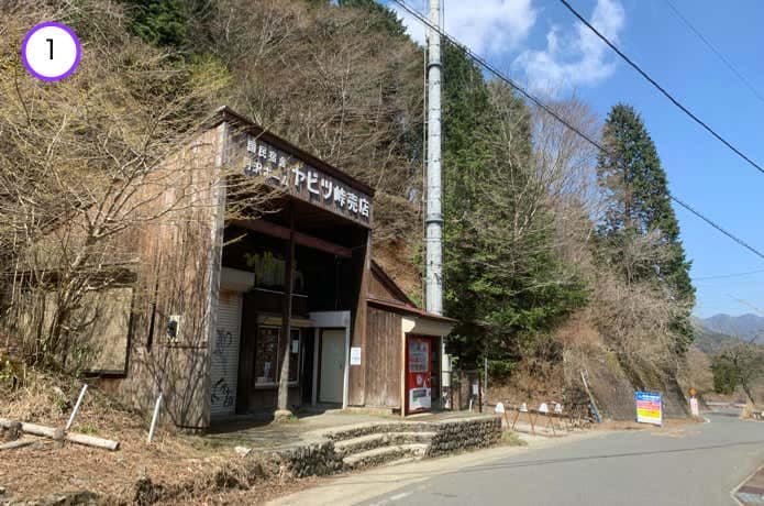 ヤビツ峠売店(営業は週末・祝日のみ)を左手に、ヤビツ峠駐車場を右手に見ながら、県道70号線を歩いていきます。