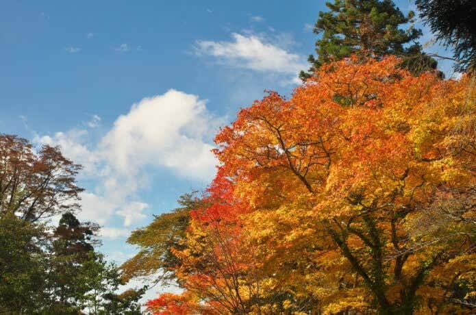 紅葉の見頃は10月中旬から11月上旬にかけてです。ブナの美林で知られる金剛山は、黄や橙に染まるブナの紅葉が見応えあり。また、毎年体育の日(スポーツの日)には「もみじまつり」が開催され、多くの人が訪れて賑わいます。