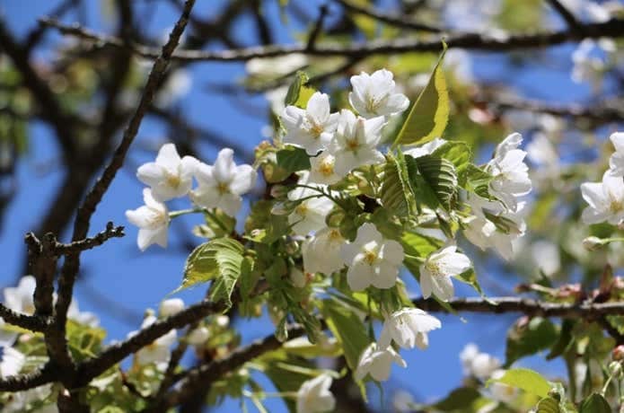 山麓は4月上旬~下旬にかけて桜の見頃を迎えます。5月初旬には国見城跡近辺で見頃を迎える金剛桜が楽しめます。他にも、金剛山では八重桜や枝垂桜など様々な種類の桜が見られます。