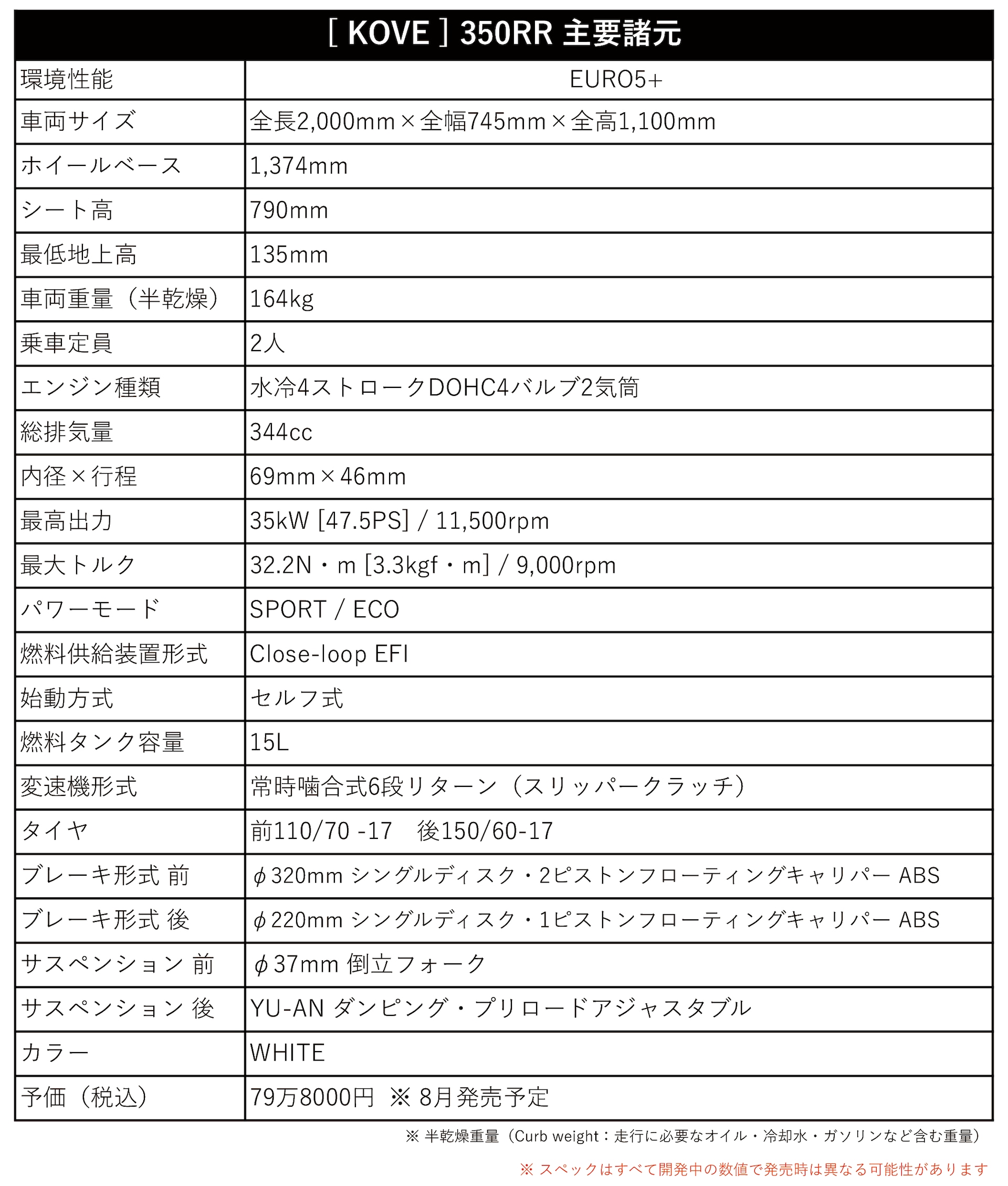 KOVE JAPANは、スーパースポーツモデル「350RR」の2026年モデルを日本市場向けに導入し、2026年8月に発売予定と発表した。