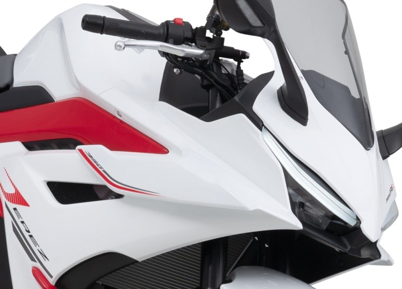 同モデルは、スーパースポーツ300世界選手権で2025年チャンピオンを獲得したレーシングマシンをベースとする344cc水冷2気筒エンジンを搭載。最高出力47.5PS(11,500rpm)を発揮し、車両重量164kgの軽量設計と組み合わせることで高い運動性能を実現する。φ37mm倒立フロントフォークやφ320mmフロントディスクブレーキ、トラクションコントロールなどを備え、サーキット由来の走行性能とストリートでの扱いやすさを両立したモデルとなる。