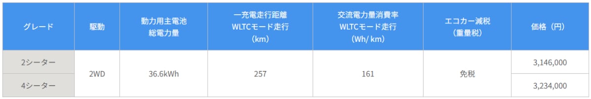 グレードは「2シーター」と「4シーター」の2タイプを設定し、車体色は全3色※3からお選びいただけます。