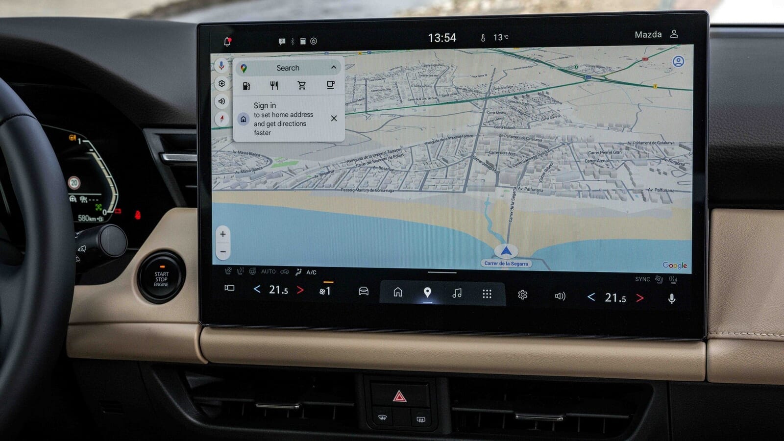マツダとしては初めて、Googleの組み込みシステムを採用しているため、お馴染みのGoogleマップ、Playストア(互換性のあるアプリをダウンロードできる)、そしてGoogle音声アシスタントが利用できる。これは良いニュースだ。使い慣れていて、操作が簡単で、よく機能する。