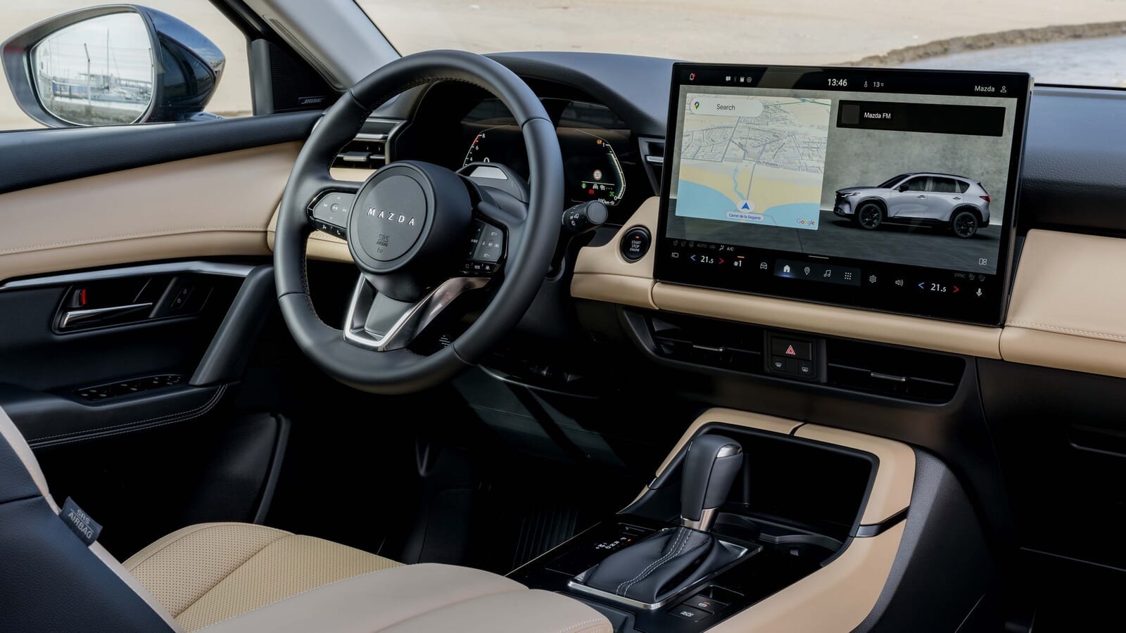 あまり良くないニュースは、マツダが多くの物理スイッチをゴミ箱に放り込み、代わりに10.25インチのドライバー用ディスプレイと12.9インチまたは15.6インチのセンタースクリーン(仕様による)を採用したことだ。少なくともGoogleが組み込まれており、マップや音声コントロールなどが使えるが、専用のエアコン操作パネルや、あのロータリーダイヤルは消え去ってしまった。悲しいかな。
