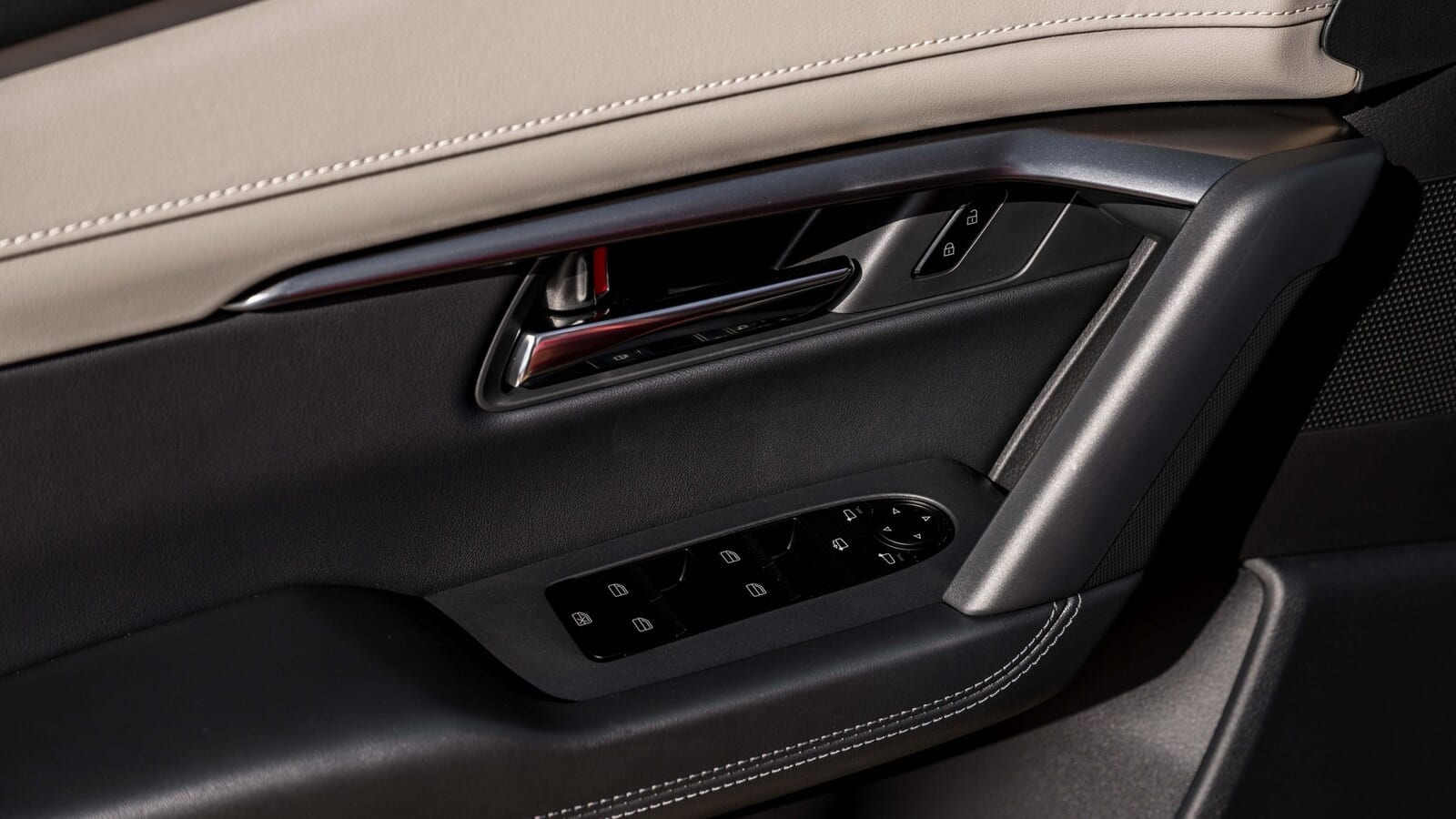 第一印象としては、確かにそうだ。マツダは明らかに、大画面スクリーン、ツートンカラーのレザー、アンビエント照明を用いてプレミアムな雰囲気を狙っているが、あちこちつつき始めると、見た目ほど印象的ではない。トップグレードの「Homura(※日本でも設定されているスポーツグレード)」モデルでさえ、硬くて引っ掻き傷がつきやすいプラスチックが多く使われており、ソフトタッチの素材はパッドが薄い。少なくとも、目に見える摩耗や損傷を最小限に抑えるために、「よく触れる部分」は黒で仕上げられており、耐久性はありそうだ。