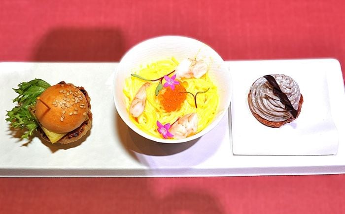 事前記者会見には、俳優の矢田亜希子さんがゲストで参加。パビリオンの成功を願って黄志芳 董事長らとダルマの目入れを行うとともに、記者会見会場のグランドハイアット東京のシェフが考案した「台湾産タロイモモンブラン」などの台湾食材メニューを試食した。矢田さんは「(考案メニューは)とてもおいしかったです。台湾に行ってみたい」などと述べ、台湾の食に関心を持ったようだった。