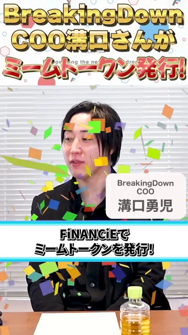 「連続起業家として知られる溝口勇児氏プロデュースによるミームトークンが遂にFiNANCiEに登場!」と記載。