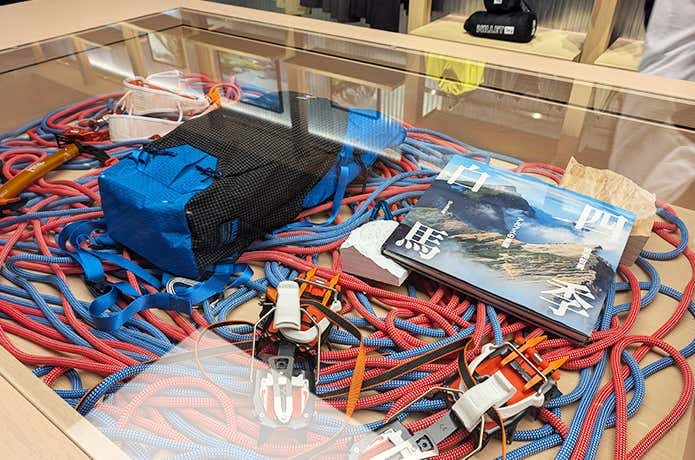 ここには、超高所登攀をも支える最高峰ライン「TRILOGY(トリロジー)」や、驚異の透湿性を誇るレインウェア「TYPHON(ティフォン)」など、私たちの山行を支えてくれるガチなギアが並びます。