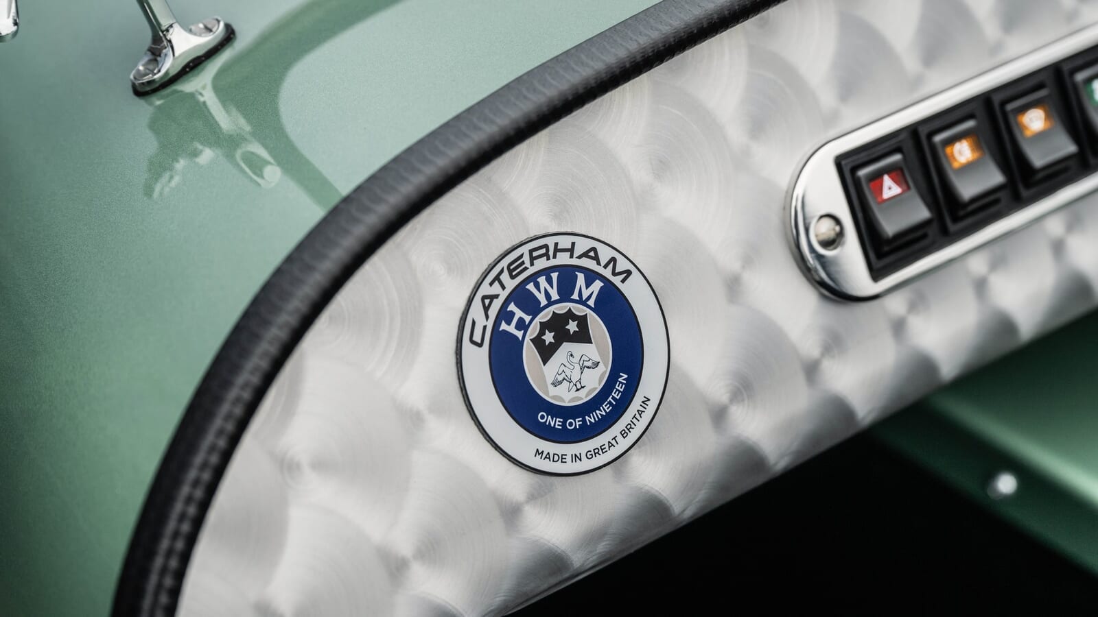 HWMは現在でも、5台製造された1951年製シングルシーターのうちの1台を所有しており、その非常に美しい「HWM グリーン」の塗装がスキャンされ、この特別なセブンに再現されたと聞いている。さらに、フロントには特注のグリル、レーシングカーにインスパイアされたサイドパネルのルーバー、そしてリアの中央にはクロームメッキの燃料フィラーキャップ(給油口)が取り付けられている。気の利いた小さな13インチのアルミホイールも装備している。