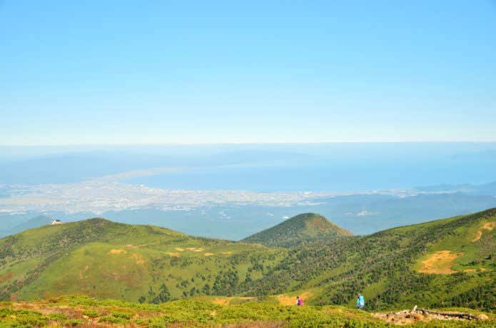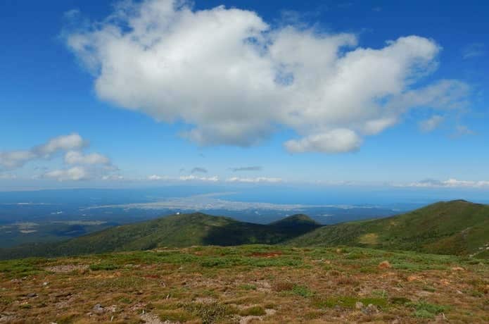 八甲田山山頂からは、天気が良ければ津軽半島や下北半島、さらに北海道まで見えることもあります。紅葉と海と空のコントラストを楽しみましょう。