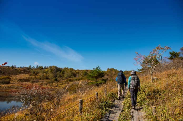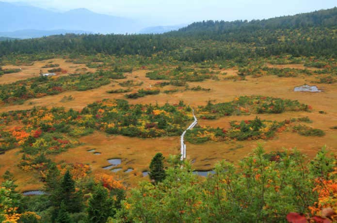ロープウェイを降りてすぐの所に広がる田茂萢湿原。湿原を楽しめる遊歩道が整備されており、展望デッキからは田茂萢湿原が見渡せます。紅葉の時期は草紅葉が美しい場所です。