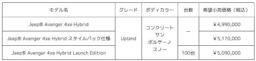 - 日本でジープ初の電動四輪駆動モデルの発表を記念した限定モデル100台を発売