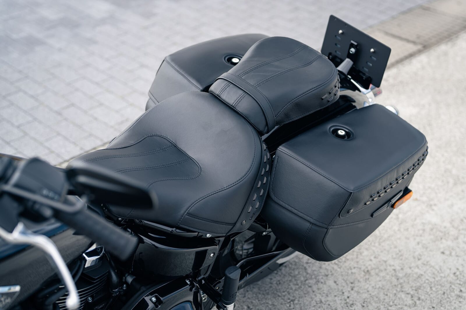 ルックスについては、LEDライトがインストールされたシャークノーズフェアリングやデジタルメーターが未来的なロードグライドと、フロントフェンダーの形状など名前の通りに伝統を感じさせるヘリテイジクラシックとで、対照的に見える。しかし、この2台を選んだのには明確な理由がある。