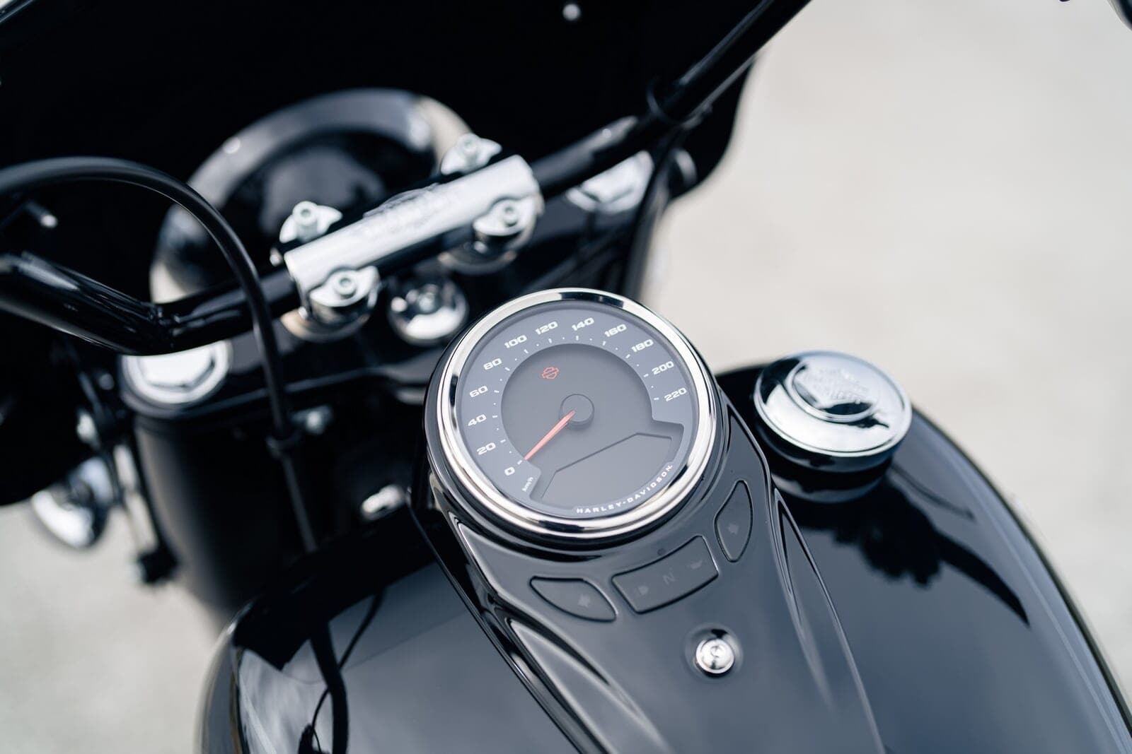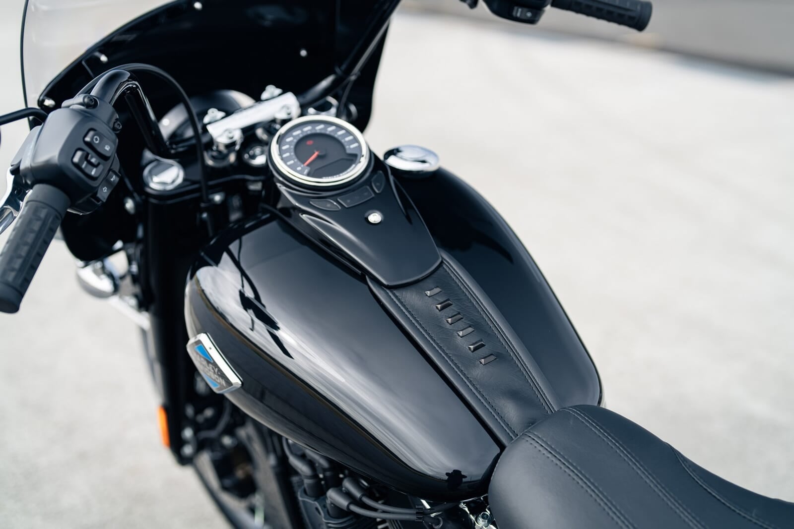 燃料タンク上にアナログメーターを配置するデザインは、ハーレーダビッドソンに対する古典的なイメージを具現化している。スタータースイッチを操作し、ミルウォーキーエイトを始動すると、わずかな間をおいて力強い鼓動を伴ったアイドリングが始まる。ルックスから受ける印象そのままのフィーリングが、大排気量Vツインらしいワクワク感を盛り上げる。