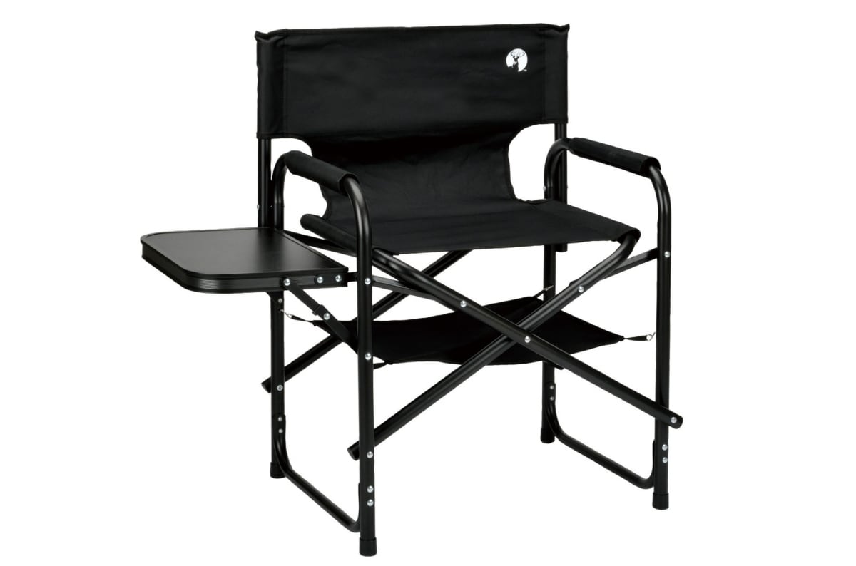 2026年で50周年を迎える、キャプテンスタッグの新作「棚モック付きアルミディレクターチェア<サイドテーブル付>」は、座れるだけでは終わらない一脚となっています。