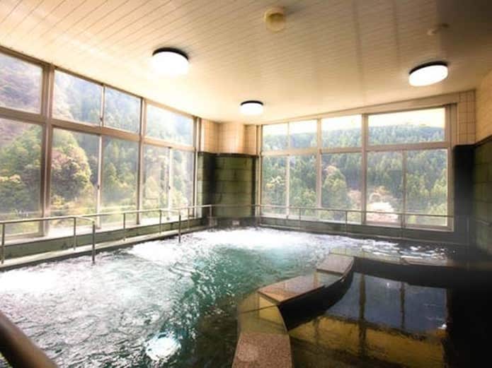 単純硫黄泉と人工鉱石温泉の2種類のお湯を楽しめるのが特徴的で、大歩危峡の美しい景色が望める露天風呂をはじめ、貸切風呂や岩盤浴もあるなど、アメニティも充実です。