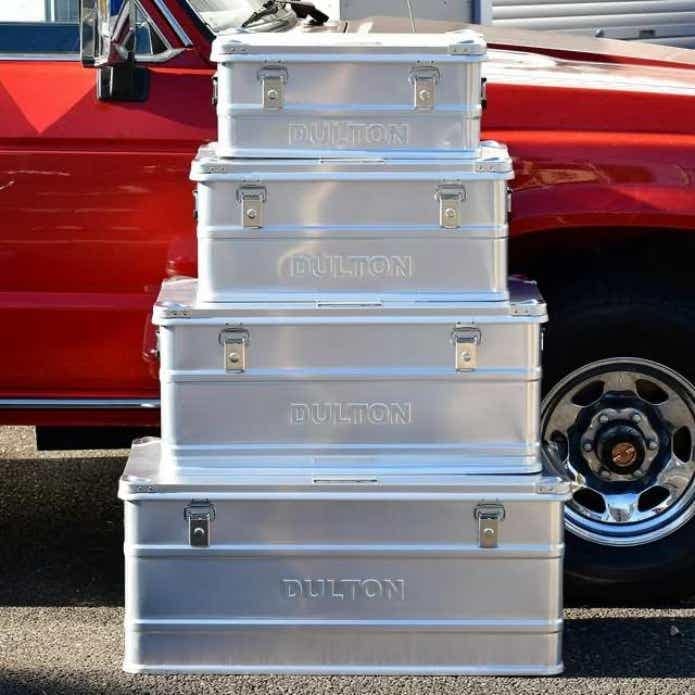 ダルトンの定番コンテナは、アルミ製ボディにエンボスロゴをあしらった無骨なデザインが魅力。使い込むほどに細かな傷が刻まれ、ギアらしい味わいが増していきます。サイズはS・M・L・XLの4展開で、用途に合わせて選べるのもうれしいポイントです。