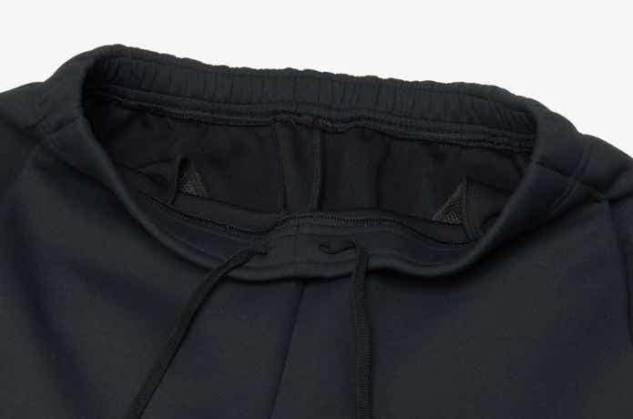見た目は肉厚ですが、行動時でも重さを感じにくいのが特徴です。裏側にはやわらかなセルロース素材を配置し、肌当たりも快適。リラックス感のあるシルエットで動きやすく、トレーニングから日常使いまで幅広く活躍します。