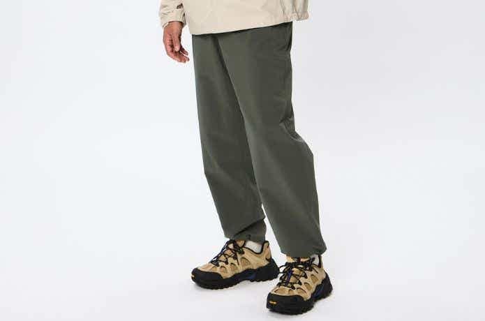 左右の大型カーゴポケットに加え、サイドやヒップにもファスナーポケットを配置して収納力も十分。裾はアジャスターコードで絞ることができ、シューズやシーンに合わせてシルエットを調整できます。