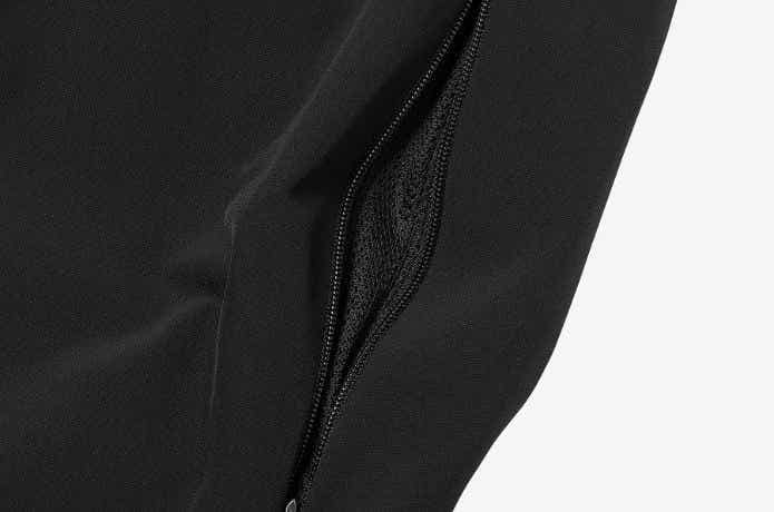 太ももまわりにはほどよい余裕があり、動きやすさを重視したシルエットも特徴。両サイドにはファスナー式のベンチレーションを備え、暑いときは素早く換気できます。