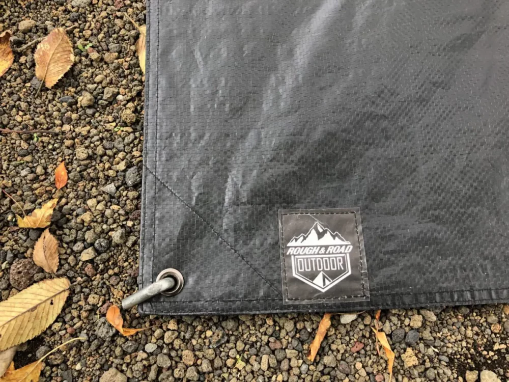 これはRR5956 ラフグランドシートでサイズは210×180cm。色はブラックでしっかりとした耐久性をもち各コーナーにペグダウン用のハトメ付。