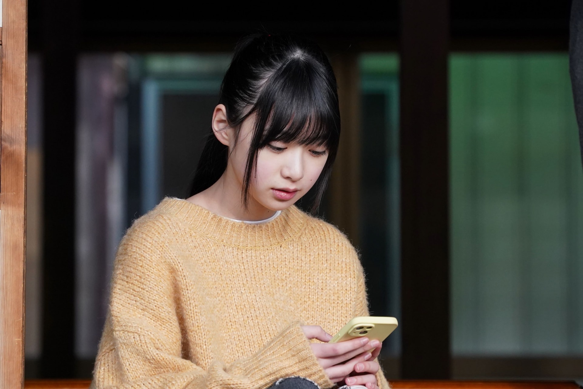 (C)ytv長女・優香(畠桜子)は心配そうにスマホを見つめる