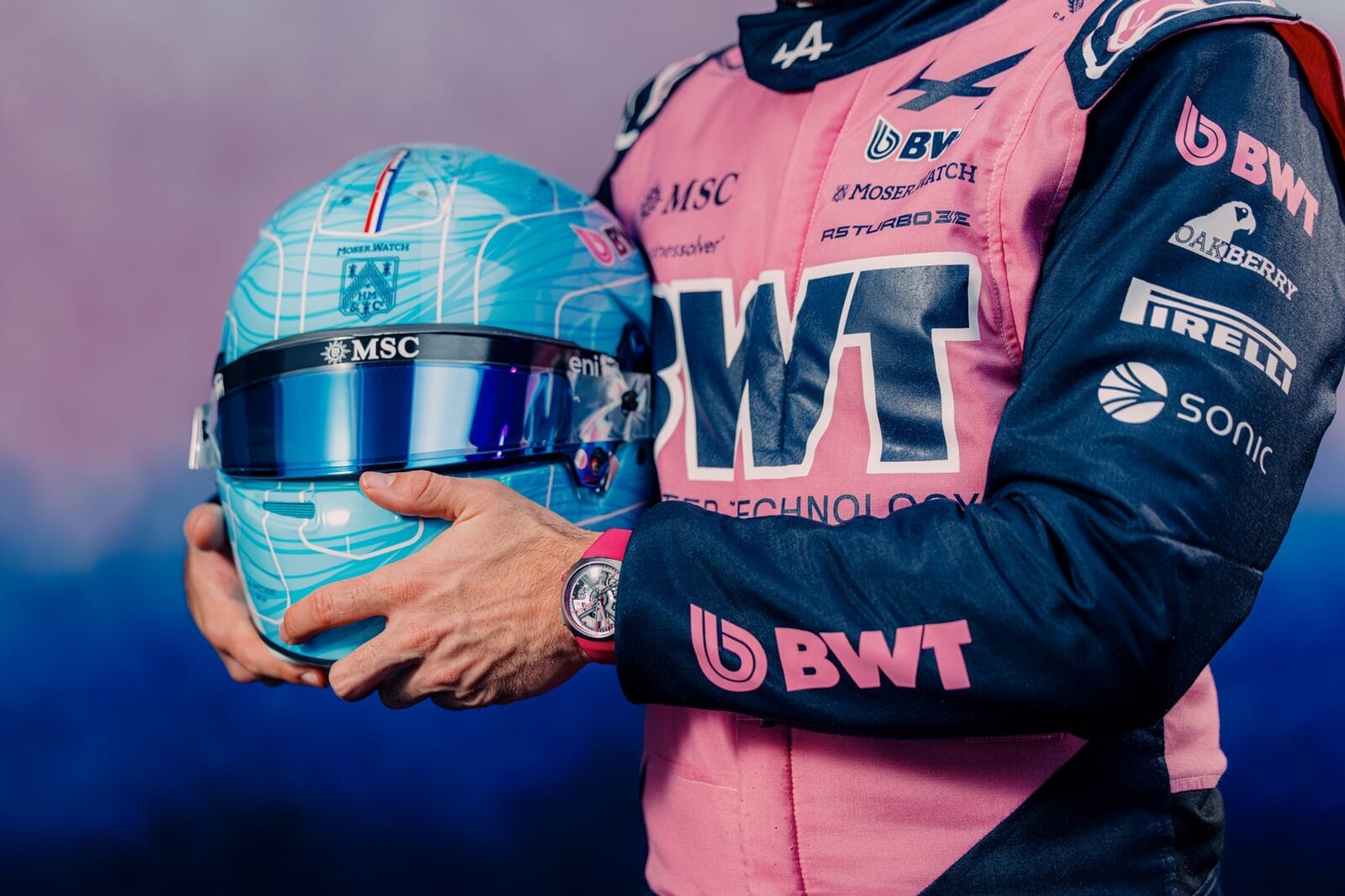 H.モーザーとBWTアルピーヌF1が共鳴し生まれた50セット限定のタイムピース。F1マシンのエンジニアリングとピンクの大胆なカラーを纏った至高のペアである。