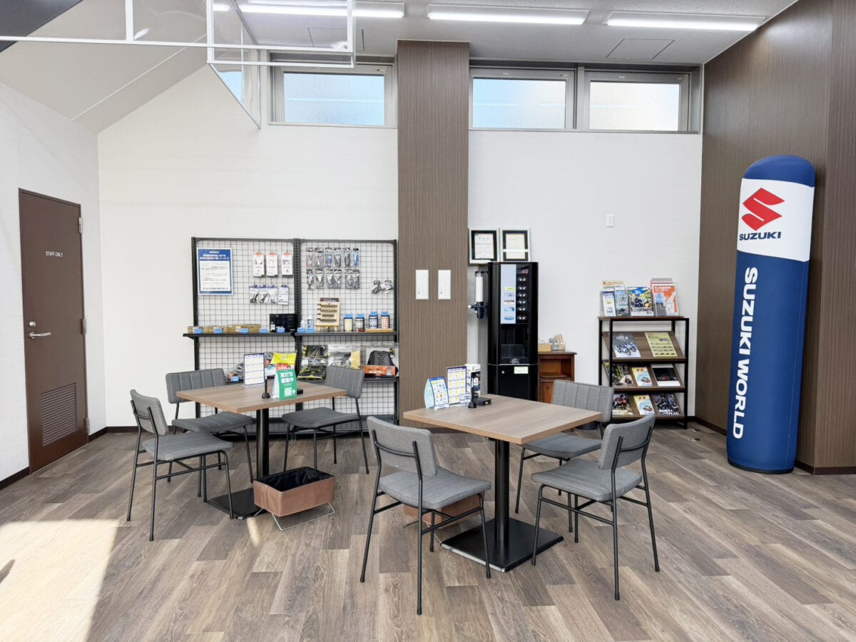 今回の移転リニューアルにより、最新設備と快適なショールームとなり 「スズキ専門店」としてスズキの二輪車に対するお客様の様々なニーズに対応できるよう、万全の体制を整えてまいります。