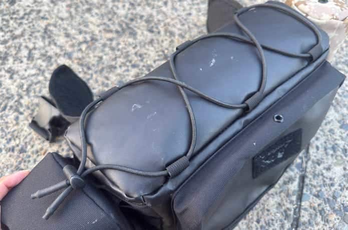 底部にはタオルやレインジャケットなど、バッグに入りきらないウェアを収納できるバンジーコードが付いています。