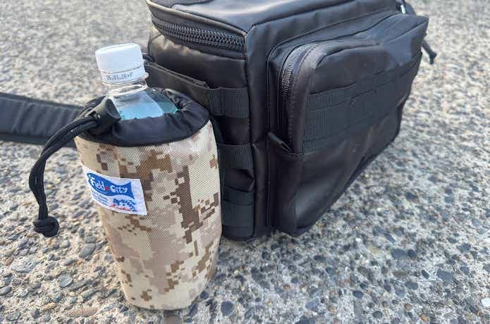 メインポケットが大容量なので、ドリンクを持ち運ぶことは可能ですが、ルアーボックスでいっぱいの時は外付けドリンクホルダーの出番です。