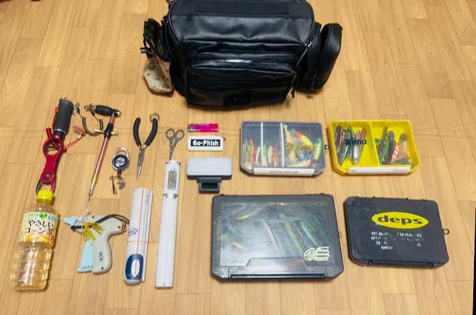 私がこのバッグに収納して、ランガン釣行時に持ち歩いているアイテムはこちら。