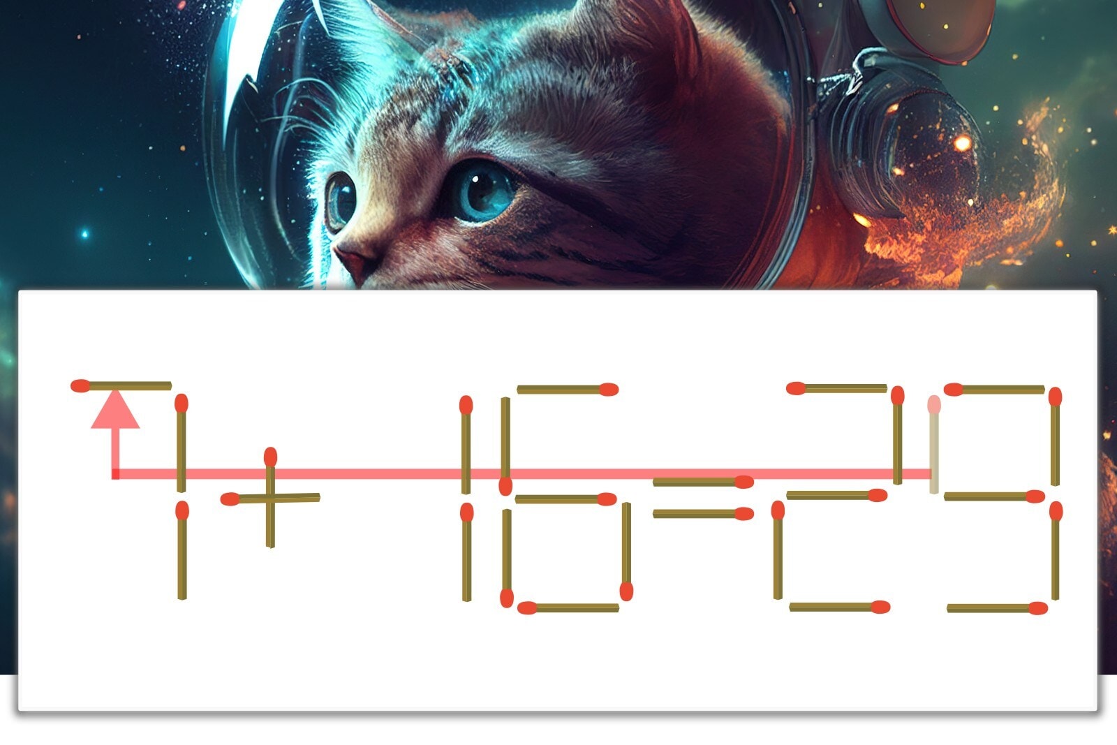 「9」を別の数字に変化させると答えが導き出せます。「9」のマッチ棒を1本移動して、「1」を「7」にしてみましょう。すると、「7+16=23」が成立します。