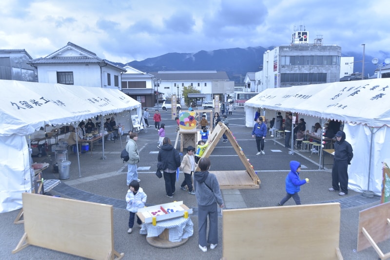 うきは市には公園など子どもが遊べる場所や遊具などが少ないという市民の声があったといい、ASURAは子どもたちにも楽しんでもらおうと2月10日~12日、イベントで使われていなかった白壁交流広場に、すべり台などの遊具を設置したほか、万華鏡とゴムてっぽうの工作体験や軽食販売などの企画で盛り上げた。