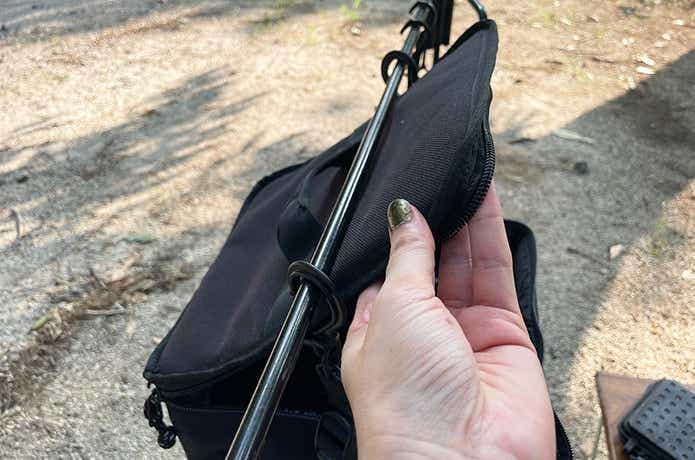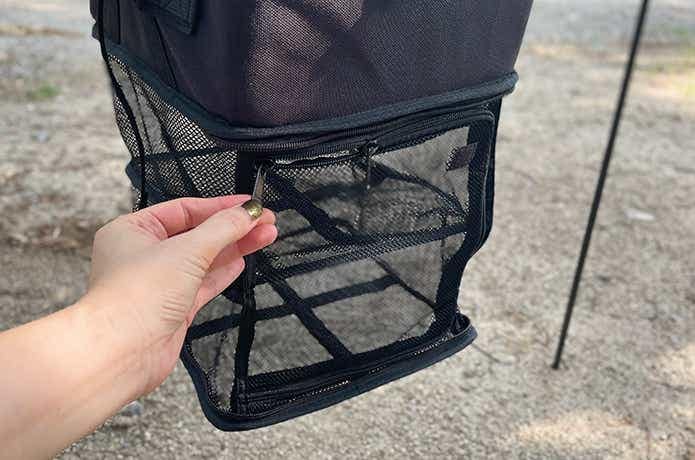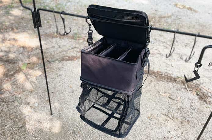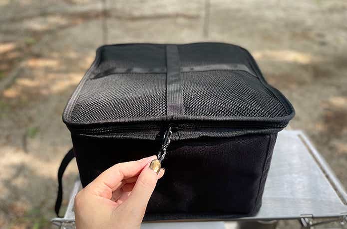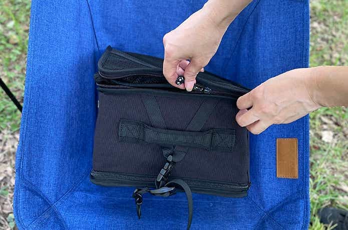 使うときもまたここから出すだけで、ドライネットを収納すればそのまま運べます。つまりソロキャンプなら、運搬→乾燥→収納の流れがこれ1つで完結できて、実にスマートです。