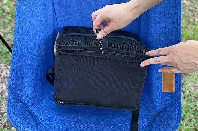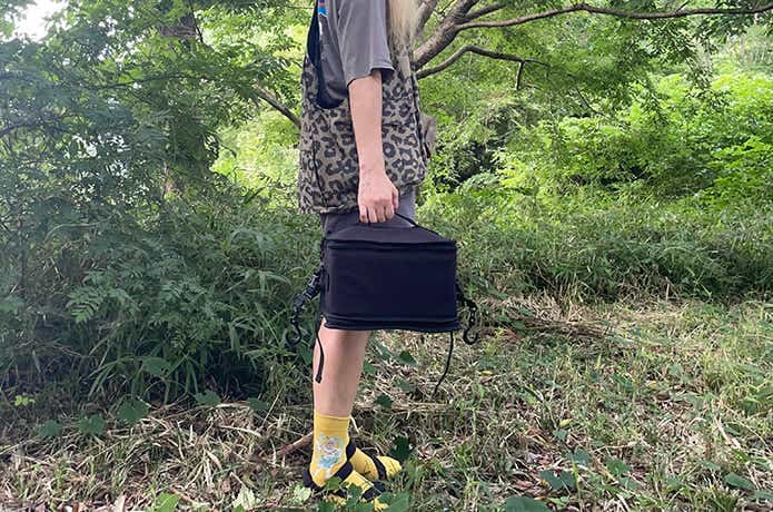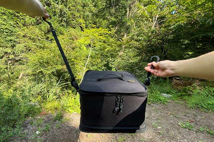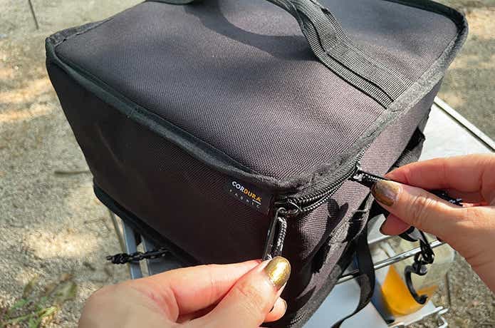 コンテナ部分の材質は、高耐久のコーデュラナイロンを採用。重さは約768gと軽量で、片手で軽々と持ち運べます。