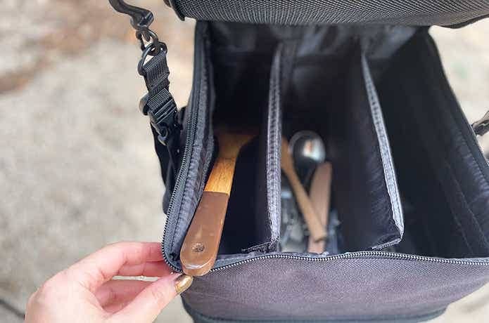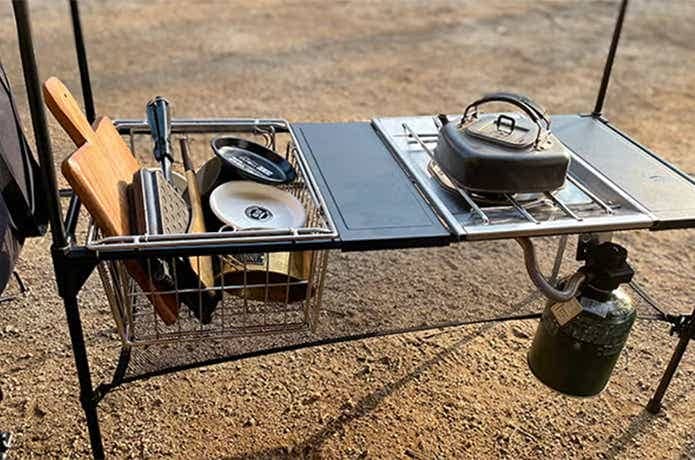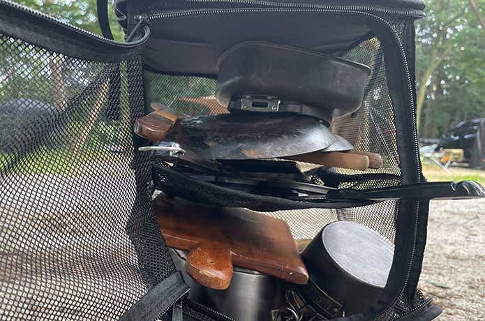 こちらはコンテナ部分に比べると、2〜3人分の1回の食事分に相当する食器や調理ツールが全て入ったので、筆者家族3人でのキャンプでも十分実用性のあるサイズでした。