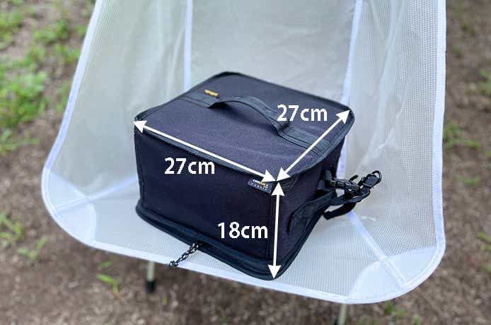 一見、よくあるソフトコンテナにしか見えない「コンテナ+ドライ」。この状態でのサイズは、約幅27×奥行き27×高さ18cm。