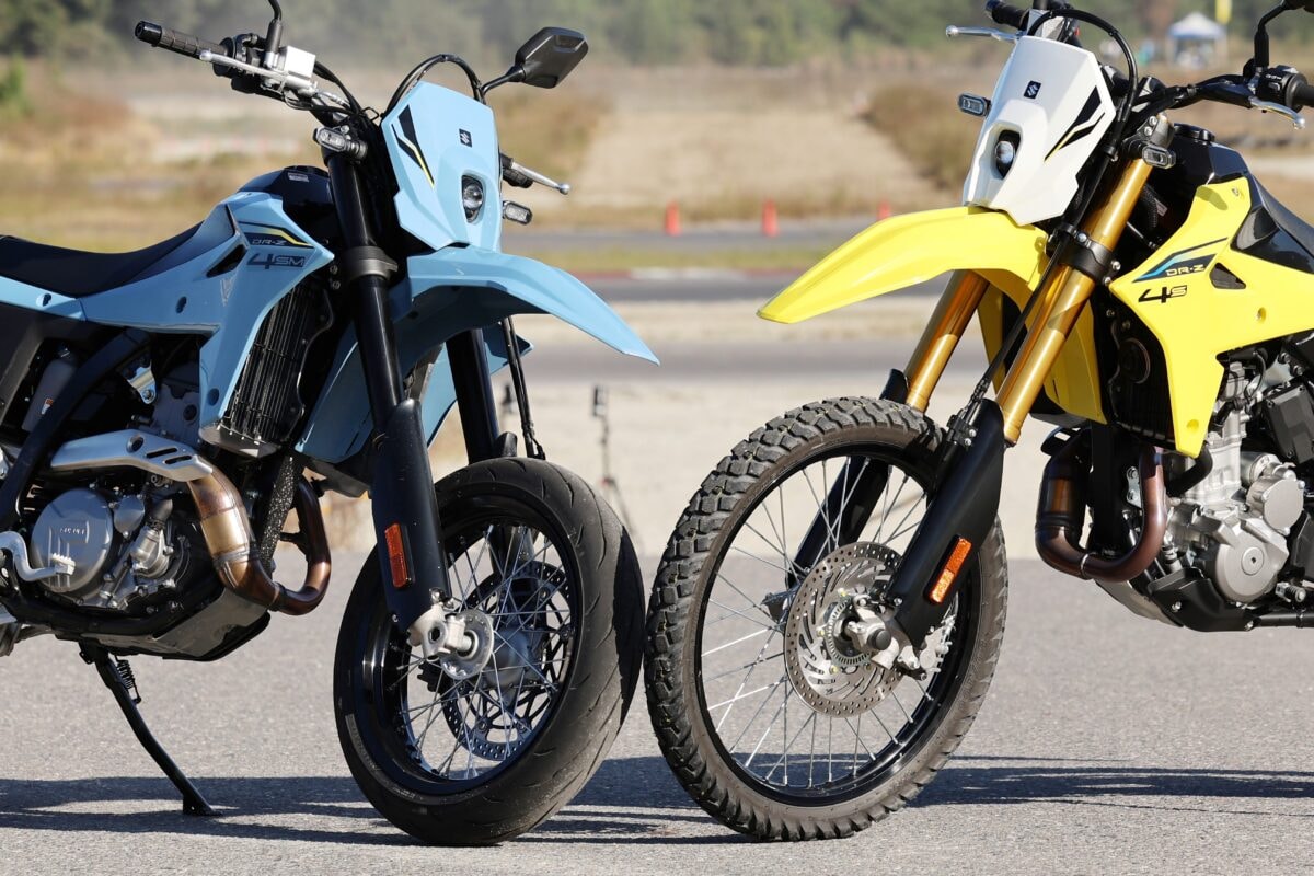 2025年10月に登場したSUZUKI DR-Z-4S/SMは、軽快でスポーティな走りが魅力のモデル。デュアルパーパスモデル、モタードモデルともにノーマルの足まわりも完成度が高く、走りの良さをしっかり味わえる仕上がりになっている。