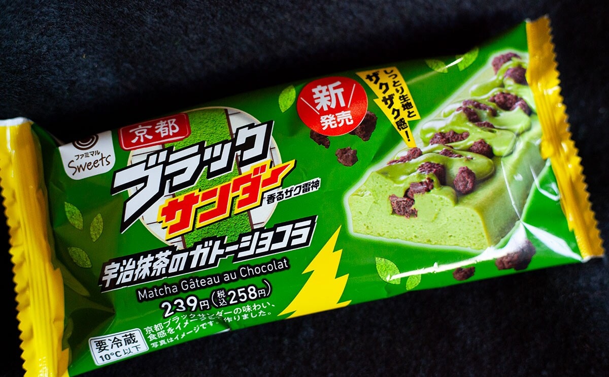 2026年3月10日(火)、ファミリーマートは、「京都ブラックサンダー 宇治抹茶のガトーショコラ」(税込258円)という新商品を発売しました。