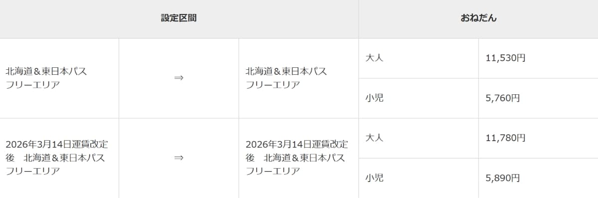 【2026年春】北海道&東日本パス 価格改定まとめ