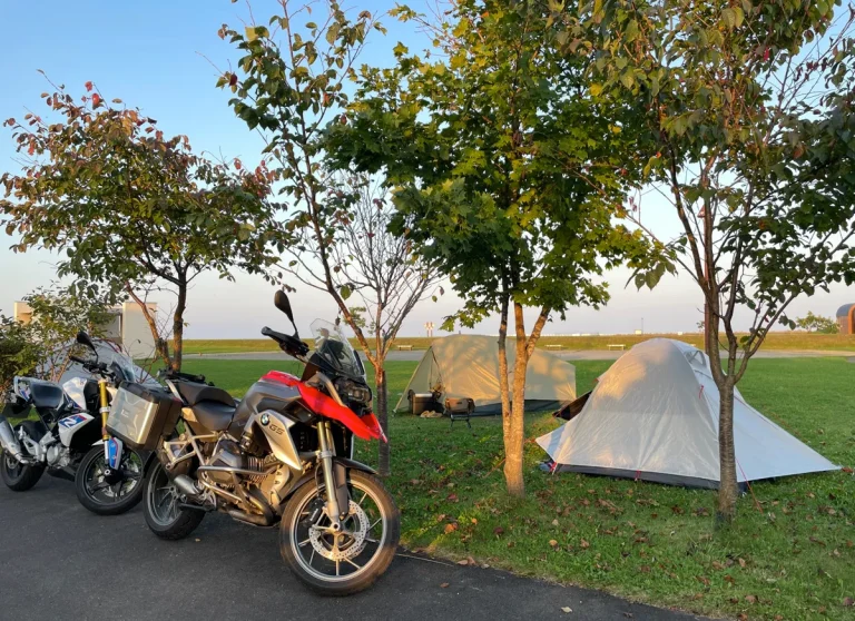 世紀末から令和の国道244号線に戻った後は、北へ5kmほど進むと標津(しべつ)町の人気キャンプ場「しべつ海の公園」があるので、ここを本日の寝床とさせていただきます。