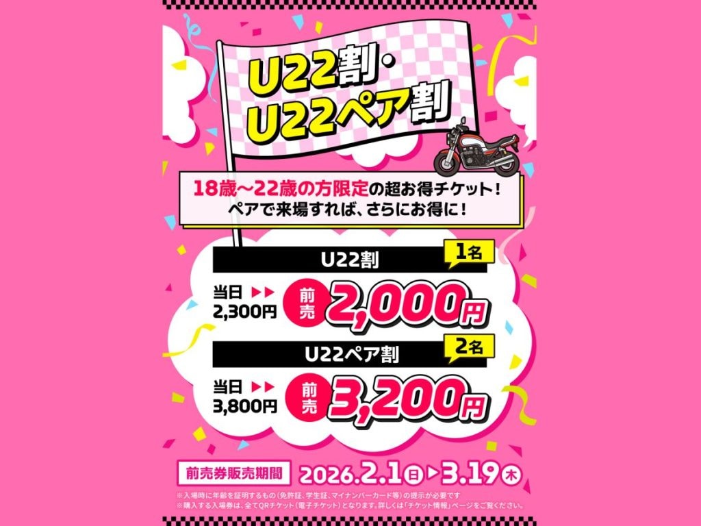 入場券はU22割引やグッズ付きチケットなど複数の区分が用意されており、高校生以下は”無料”です。これからバイクに乗ってみたいと考えている若年層にとって、バイクに触れる最初のきっかけを掴むチャンスです。また、ステージイベントや体験型コンテンツ、グルメブースなどが充実しているため、家族や友人、バイクに詳しくない同行者でも楽しむことができます。バイクに乗っている人も、これから乗るかもしれない人も、まだ知らない人も、世代や立場を越えて楽しめることこそ、モーターサイクルショーの大きな魅力です。