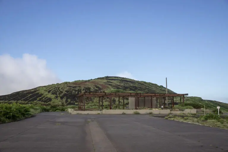 三宅島の外周を海に沿ってぐるりと一周している三宅一周道路から外れて、島の中心へ上がっていくと、「七島展望台」があります。ここはまさに三宅島復興のために東京都が援助して毎年開催している三宅島エンデューロレースの会場そのもので、この駐車場は開会式が行われる場所なんです。