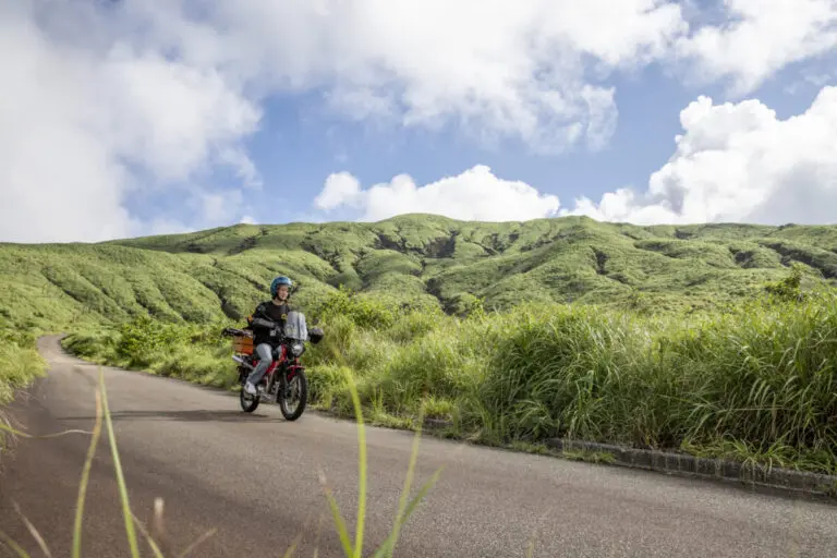 今回はバイク歴15年、うちオフロードバイク歴10年のおじさんライダー・伊井が、現役女子大生の伊澤さんを離島まで連れ回しちゃいました。なんと、彼女はモトクロスライダーで全日本選手権にも出たことがあるのですが、公道をバイクで走るのは初めてなんですって。公道デビューを三宅島で経験できるなんて、そんなラッキーありますか⁉︎