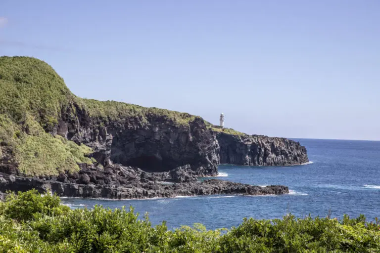 まずはこちらが、「サタドー岬」。三宅一周道路から20mの高さの断崖絶壁が見られます。この絶壁も噴火時の溶岩流から形成されていて、「サタドー」はヒンドゥー語の「地獄」を意味する言葉から来ているという説もあるのだそうです。名前だけで恐ろしい感じ、しますよね。ところでなんでヒンドゥー?