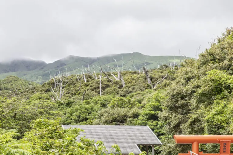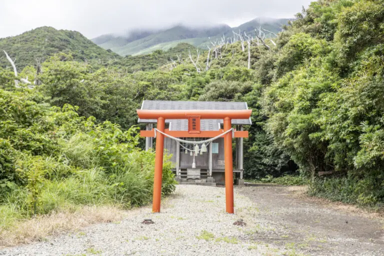これは火山ガスの影響で枯れてしまったと言われています。そして実はこの鳥居と社殿は、2000年の噴火の後に再建された新しいもの。
