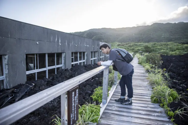溶岩の中を縫って歩ける遊歩道が整備されていて、こんな間近でその被害の大きさを見ることができます。ただしもちろん、この溶岩の中は立ち入り禁止ですし、持ち帰ったりも一切できませんので注意してくださいね。